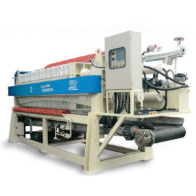 利用蒸汽或熱水在濾板內(nèi)加熱使濾餅中所含無(wú)法壓榨之水分汽化,同時(shí)利用真空泵浦將汽化之水氣及含在污泥餅中的自由水完全抽取,經(jīng)熱交換器使還原成水排放。在此同時(shí),必須使濾室內(nèi)保持負(fù)壓狀態(tài)達(dá)到-500mm/Hg(此時(shí)水的相對(duì)沸點(diǎn)約在70℃),待泥餅中的水分汽化并完全脫離泥餅時(shí),壓濾機(jī)濾板自動(dòng)開(kāi)啟,干燥污泥餅即掉落輸送帶裝入太空包或原料/污泥斗,其程式100%全自動(dòng)控制。